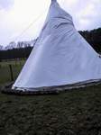 Und wieder ist ein Monat vergangen, doch das Tipi steht noch aber fragt nicht wie! Der Orkan letzte Woche war gewaltig ich musste das Tipi mit einem Seil, was ich um den Schopf gebunden und an den Weidepfosten befestigt habe, sichern. der Wind war aber so stark das sich das Dreibein In Richtung Eingang verschoben hat. Das heißt ich muss das Tipi wohl oder übel noch mal aufbauen! Wenn man bei solch einem Sturm im Tipi schlafen muss dann ist es mit der Nachtruhe nicht weit her, ich habe als es so Stürmisch war 3 Nächte nicht schlafen können weil ich immer damit rechnen musste das ich auf einmal im freien liege. Aber jetzt ist es ja hoffendlich erstmal vorbei? Damit ihr euch vorstellen könnt wie stark der Wind war habe ich versucht ein paar Bilder zu machen.